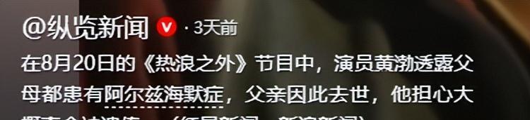 最近,在黄渤参加综艺《热浪之外》中,透露自己父亲曾因阿尔兹海默症去世。